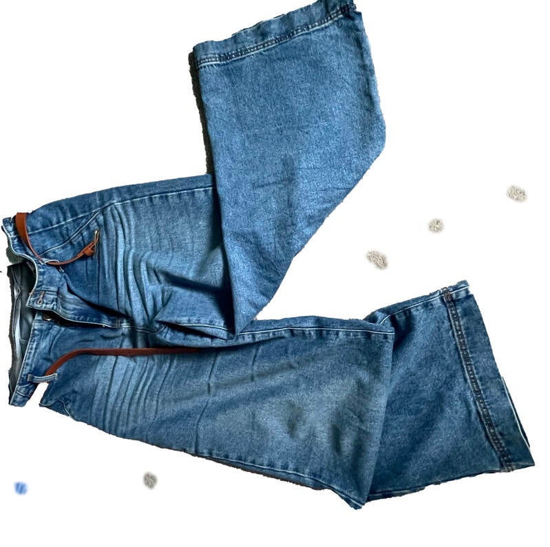 Jeans are a classic. Of course, I got the cropped jeans to find me. I'm a non-cropped short queen over here. Perfect to make your waist small and your bum peachy. It even came with a belt. These are flared at the end, creating a perfect illusion of long lets